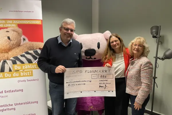 886 Euro kamen beim Flohmarkt des SPD Ortsvereins Limburg zusammen. Diese Summe spendeten Dr. Marius Hahn und Heike Bartsch vom Vorstand der SPD Limburg stellvertretend für ihre Partei an das Kinder- und Jugendhospiz Bärenherz. In der Limburger Zweigstelle von Bärenherz übergaben die beiden Sozialdemokraten einen Scheck über 886 Euro an Sabrina Haas, Leiterin der Abteilung […]